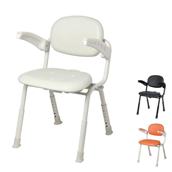 このシャワーチェアは背もたれとひじ掛け付きのため、安定して座ることができます。洗い場でも邪魔になりにくいコンパクトサイズですが、新しいひじ掛けデザインにより、座る面はミドルタイプと大差なく、狭くはありません。ワンタッチで簡単に折りたためる点や、オレンジの他にもホワイト・ブラックと最近のユニットバスにも合わせやすいカラーを選べる点もおすすめです。
